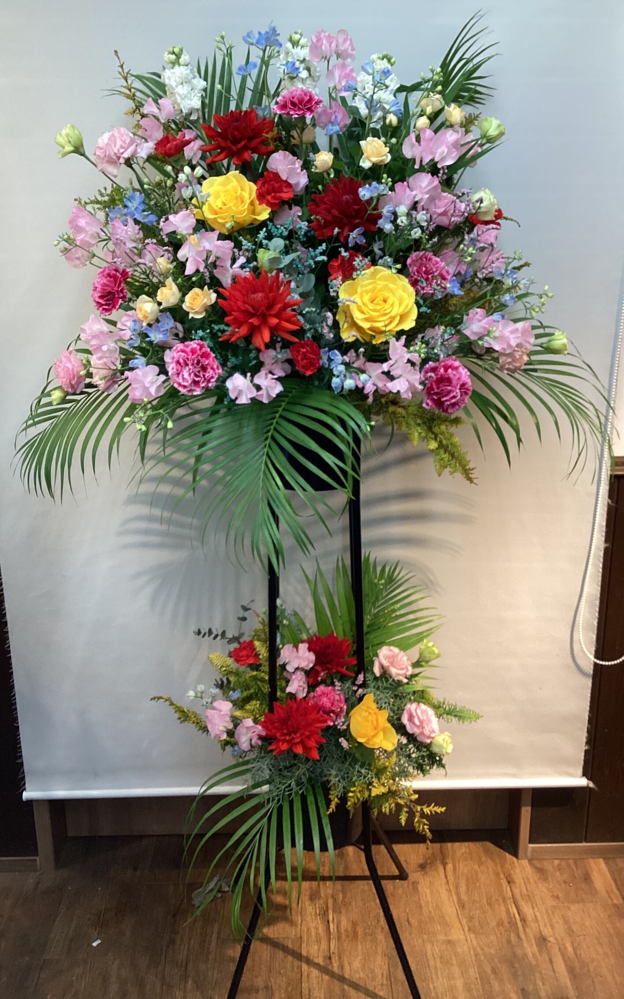スタンド台が変わる場合がございます。季節によりお花の種類は変更いたします。