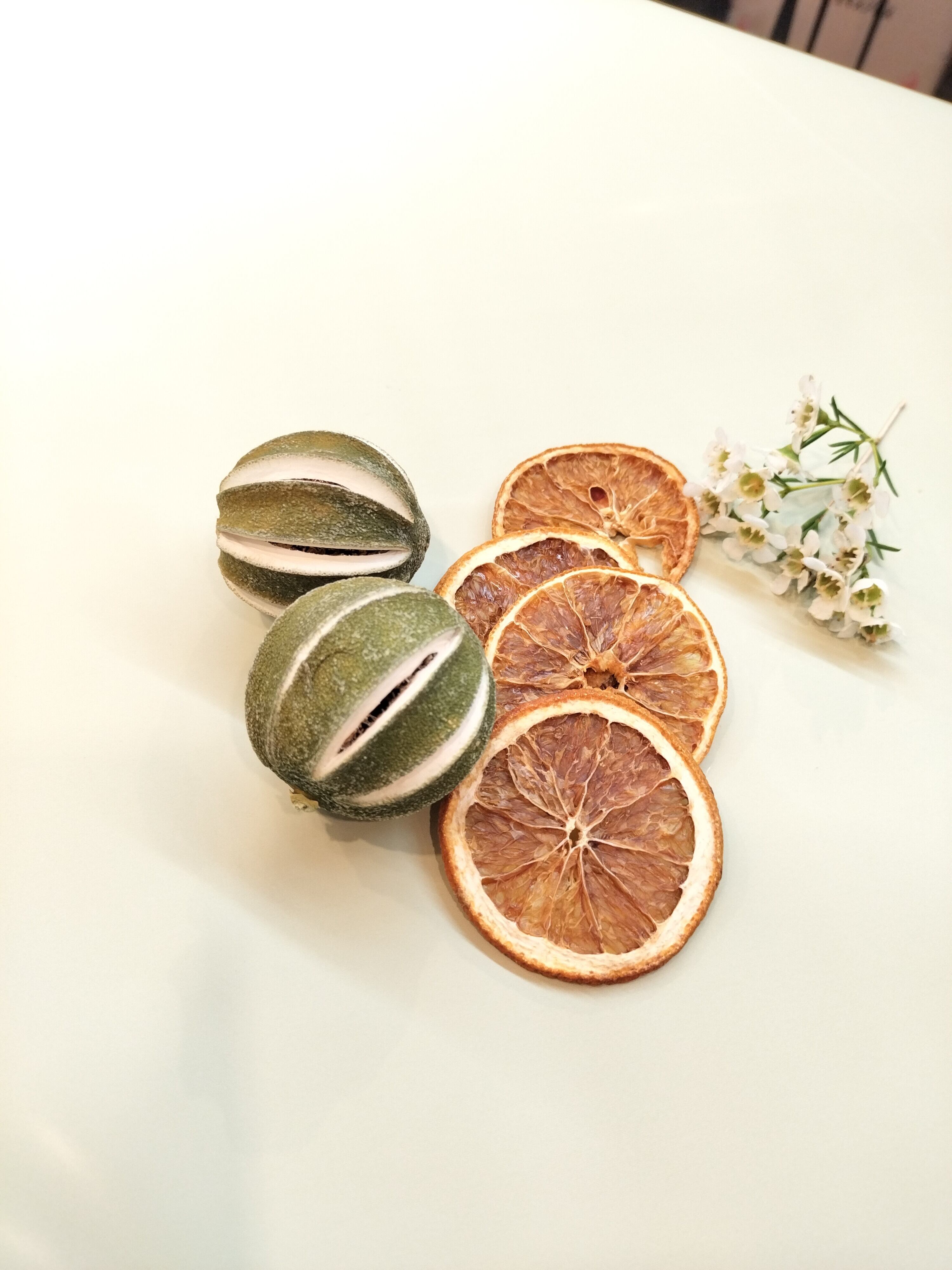 ドライフラワーのライムやオレンジ、ワイルドフラワーを使ってナチュラルなリースを作りましょう。細かいユーカリや細葉を使い、フワフワのリースです。