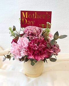2026年花工房オリジナル母の日スペシャルアレンジメントです。くすみピンクや花びらにストライプの入った複色のカーネションを使う事で定番のカーネーションアレンジメントをぐんとおしゃれに仕上げました。ピンクのカーネーションの花言葉は「感謝」などがあります。いつも忙しいお母様へ日頃の感謝が伝わりますように。おしゃれで高級感のあるゴールド箔押しのカードピック付きです。こちらは母の日商品の為、4月20日からの配送となります。
