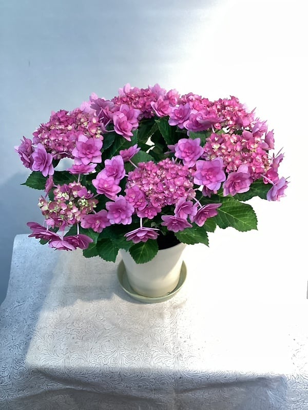 卑弥呼は丸みを帯びた八重咲きの装飾花と、装飾花のような両性花がぎっしりと咲くとてもインパクトのある花です。長く楽しんでいただくために母の日より早目のお届けをお勧めします。ラッピングしてお届けします。