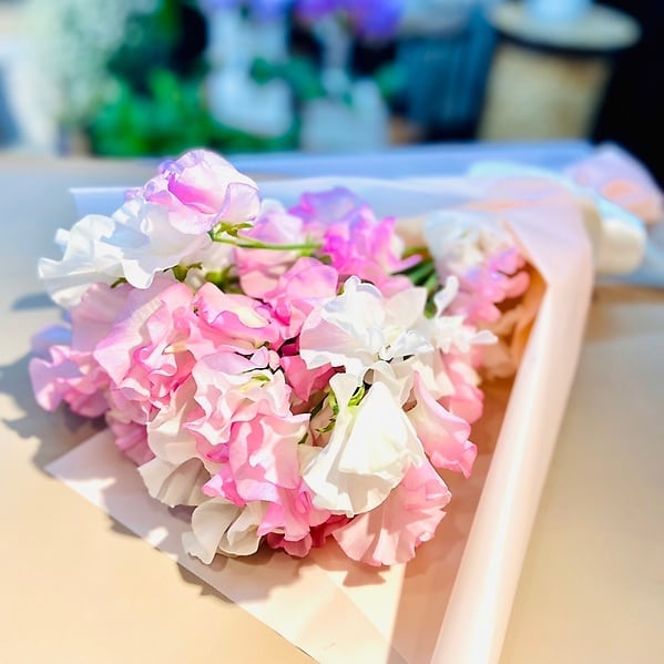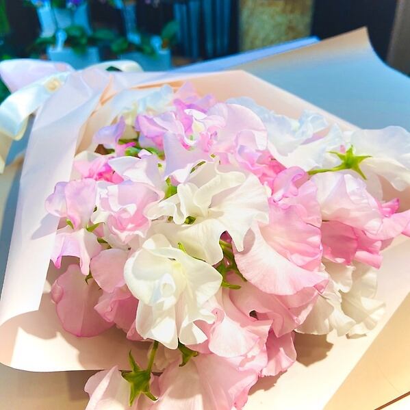スイートピーのふわふわ香りブーケ